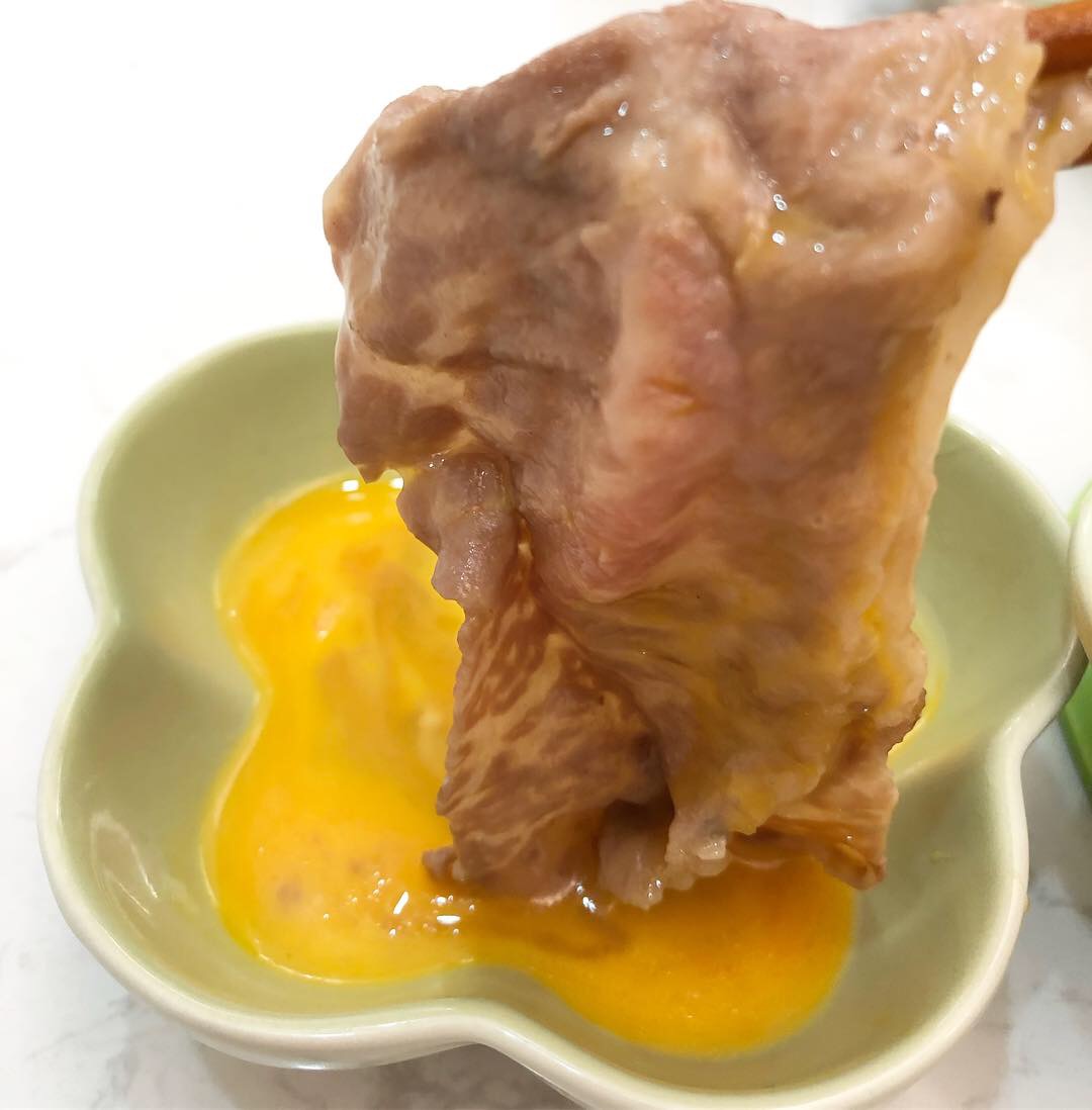 3) 雞蛋於打勻,材料煮熟即可沾生蛋汁食用,讓肉質更滑嫩