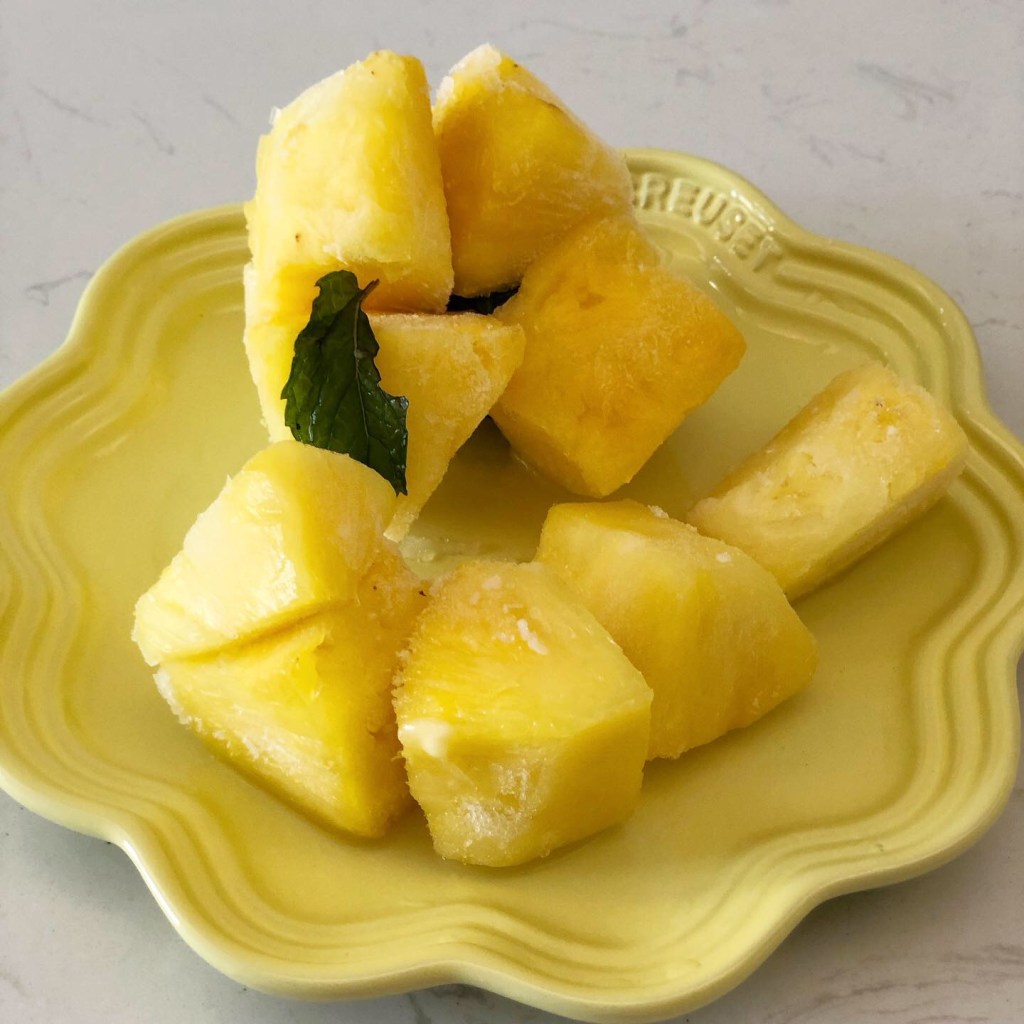 菠蘿含有豐富的維他命A和C,有助減少面泛油光或乾燥繃緊的情況,仲有助抵抗流感和病菌。菠蘿薄荷沙冰不含任何脂肪,比市面上一杯雪糕約低一半熱量。而且成份天然,不含任何添加劑,用呢部機整真係得水果。糖都唔須要落,比一般雪糕更適合小朋友食呀😛