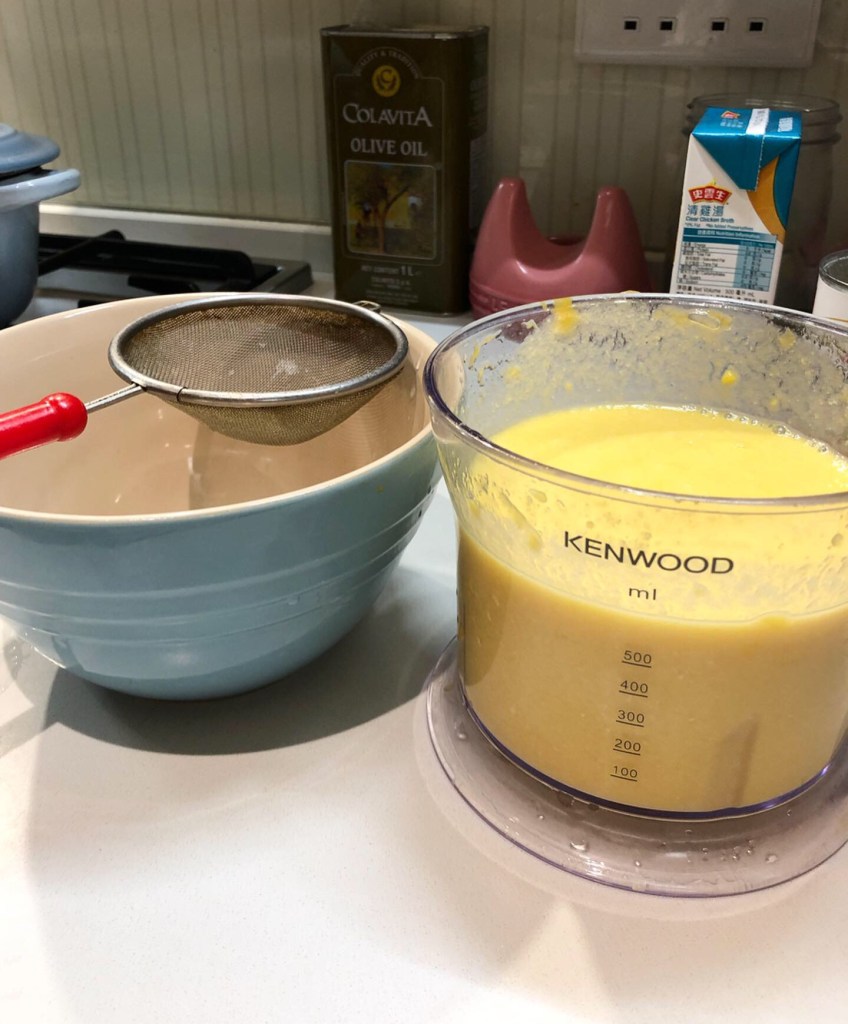 ▶️ 過篩先可以將芒果渣過走,質地就會滑滑的