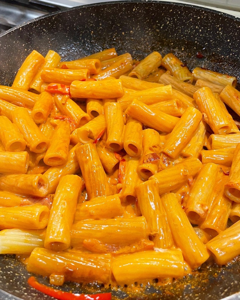 向carbone的favourite dish❤️食譜其實1年半前出過!改良咗少少!自己整都好易!意粉吸哂濃濃的cream同cheese😜Rigatoni我向 @marksandspencerhk 買到😚之前搵咗好耐都搵唔到!Vodka唔想買大大支可以睇下便利店/甜品材料店買支小小Vodka!再唔係用清酒都得😛😛