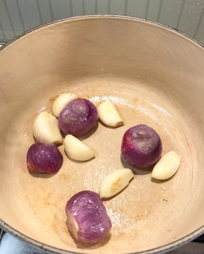 1) 冬菇浸軟切半,留浸菇水;雞加醃料醃半小時;鮑魚去殻洗淨;乾蒽頭原粒去皮;蒜頭去皮拍一拍