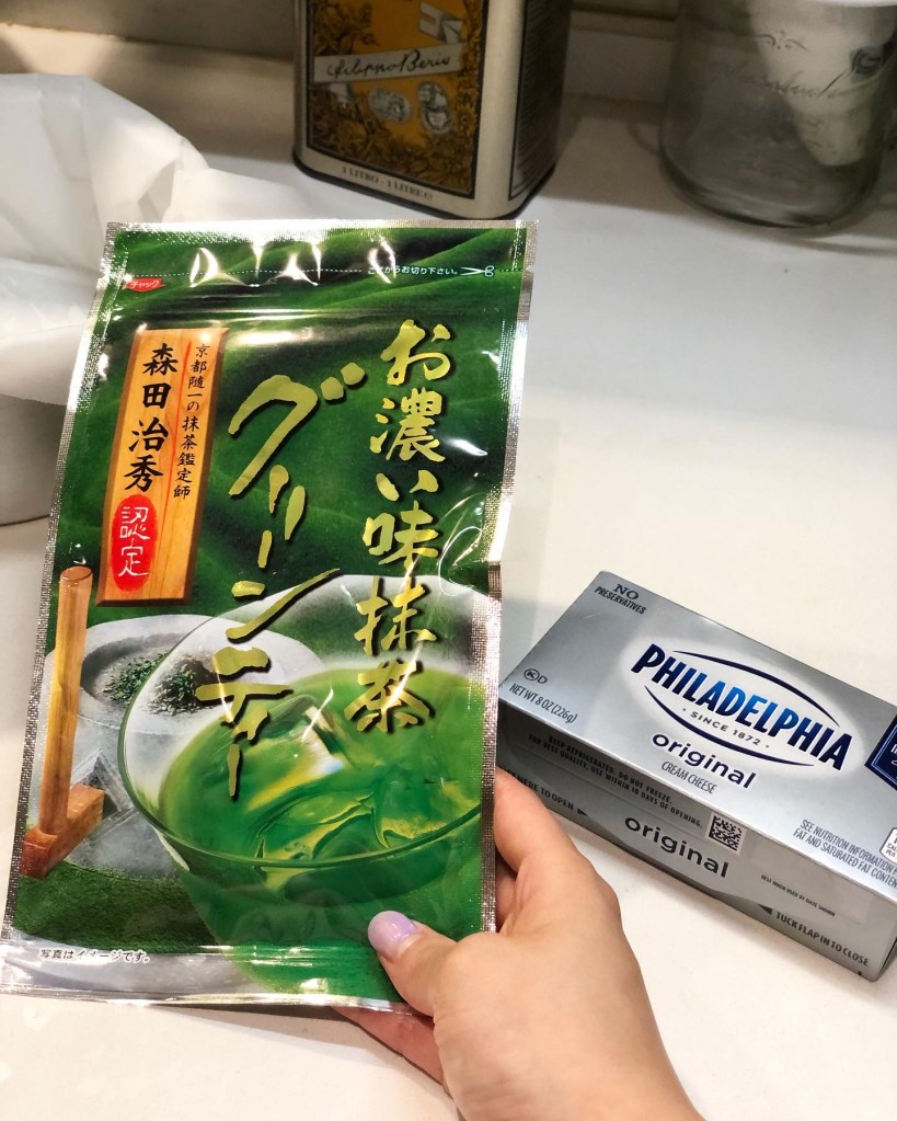 同之前原味食譜一樣!只係用多左少少cream cheese同加左綠茶粉🍵10分鐘搞掂再焗30分鐘!好易整好creamy好cheesy💚 不過我包牛油紙包得太求其個邊有點醜😌