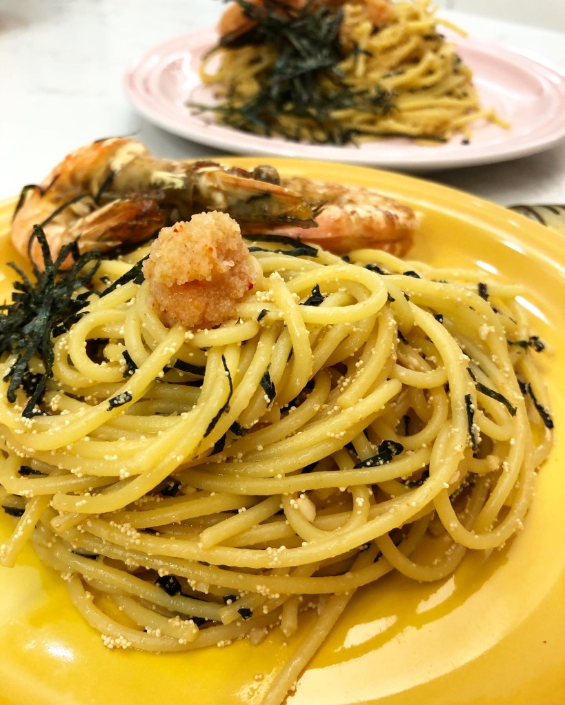 因為有陪月飯餸,呢排如果煮都係整一個餸就搞掂一餐既麵食多😅 明太子向日式超市買到🥰呢個意粉20分鐘整好💛✌🏻