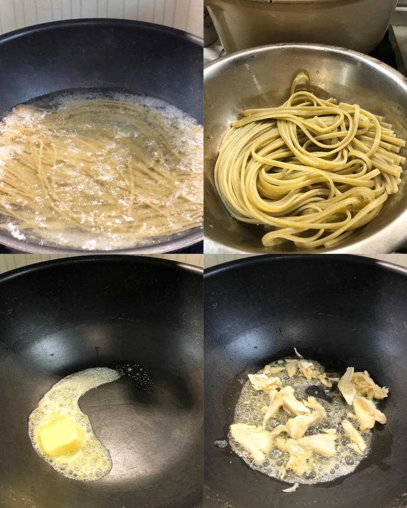 2) 燒滾熱水加1湯匙鹽,意大利粉按包裝指示減2分鐘來煮至Al Dente質感,撈起瀝乾備用