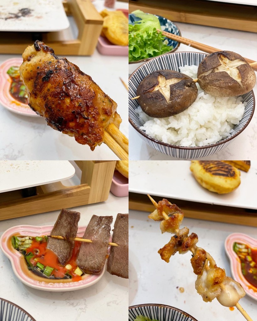 聖誕前有新機用🎄😌玩左我成晚!燒出嚟既效果好好!最好食係雞軟骨!我搵左幾間凍肉店先買到😛就咁落海鹽去燒就得!仲有免治雞肉串!下個post會再分享食譜!和牛都好正😙所有蔬果都係日本材料!食左我地好耐😍不過真係多人食會好玩啲,咩都淨係整得2串😂