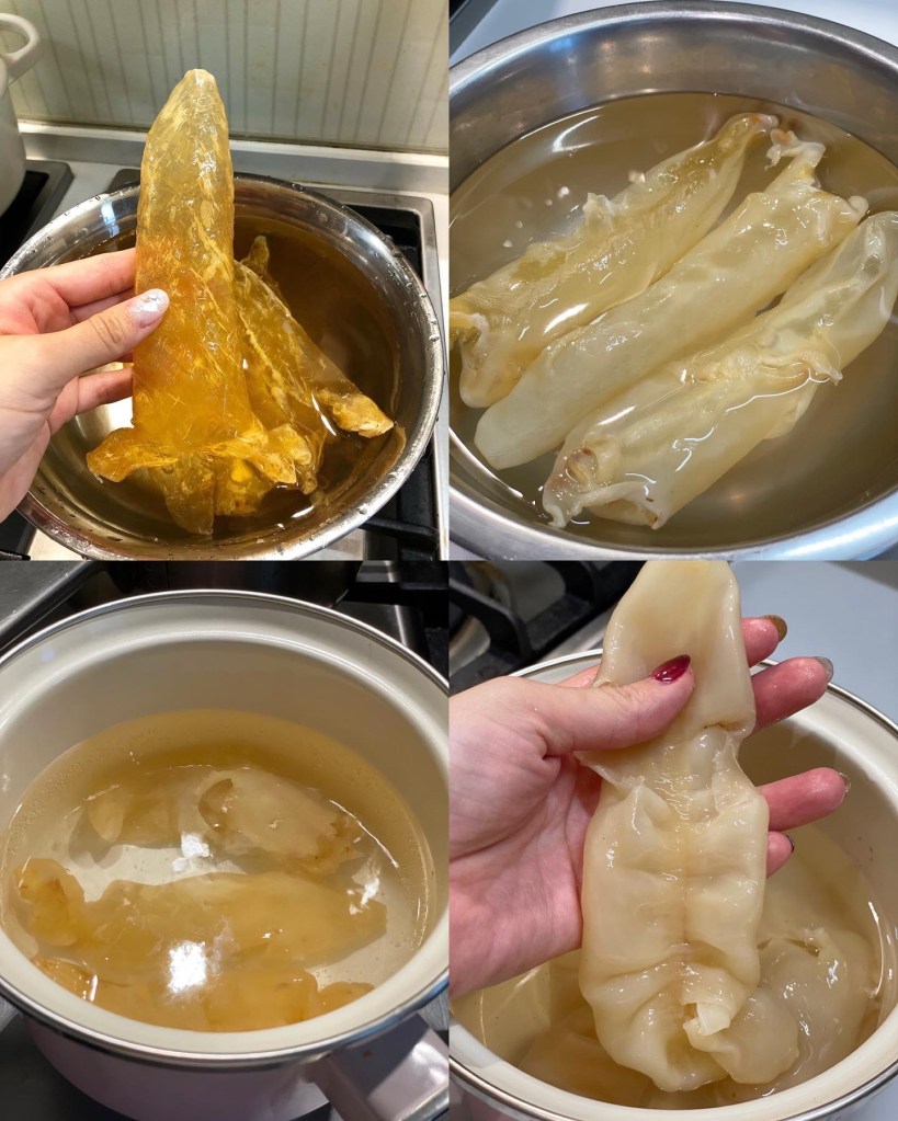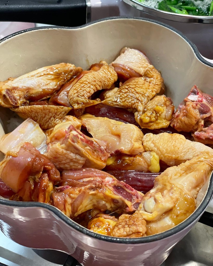 1) 將浸雞翼材料煲滾後加入雞翼,用慢火煮10分鐘,然後關火浸5分鐘,放到冰水浸15分鐘備用