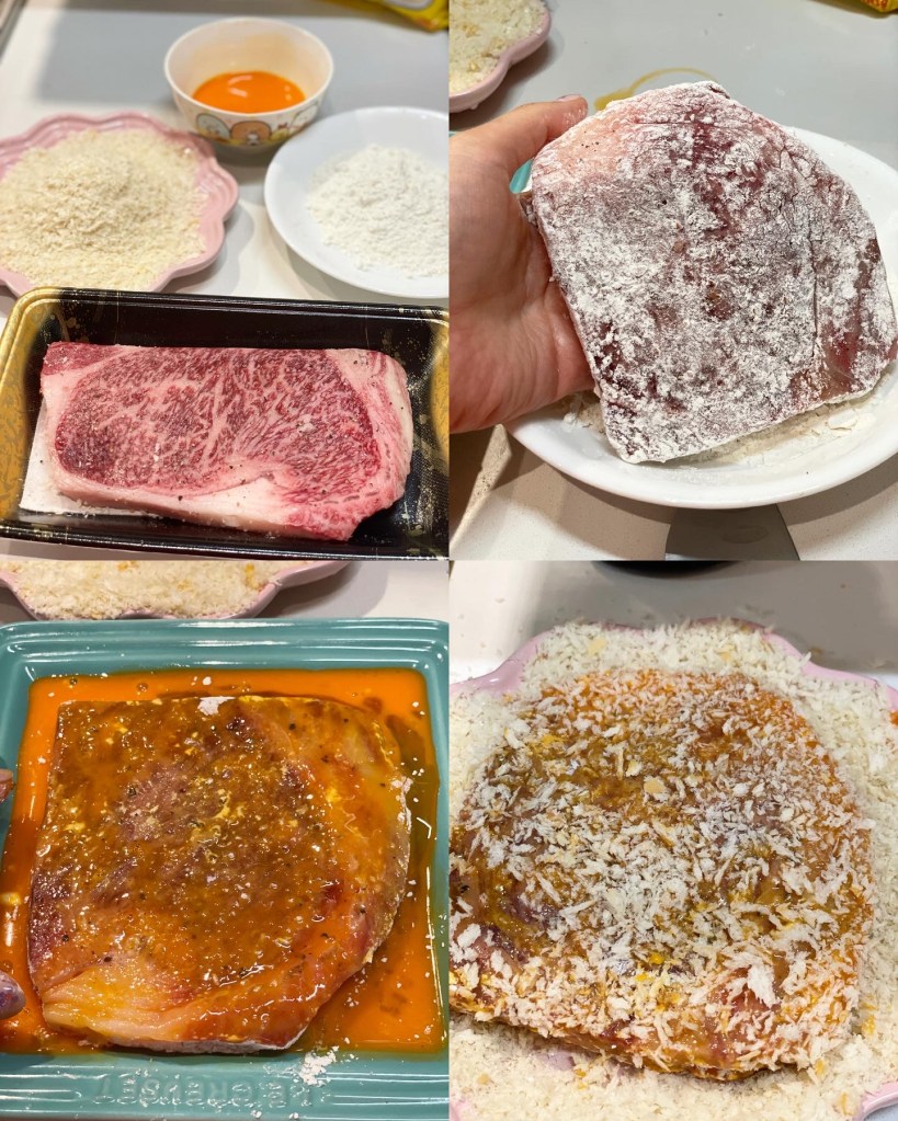 其實我係第二次整,上一次整已經係兩年前😹今次咁啱喺超級市場見到和牛半價,但前排先食過煎牛扒😍所以搞吓新意思🤔其實真係超級易整,不過我最唔鍾意就係開油炸嘢!但係整完之後覺得係值得嘅!因為真係好好味🇯🇵🥩🇯🇵🥩我忘記買日式豬扒汁,就咁攞咗燒肉汁代替算😅