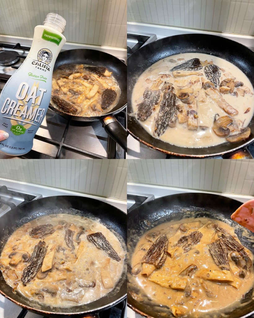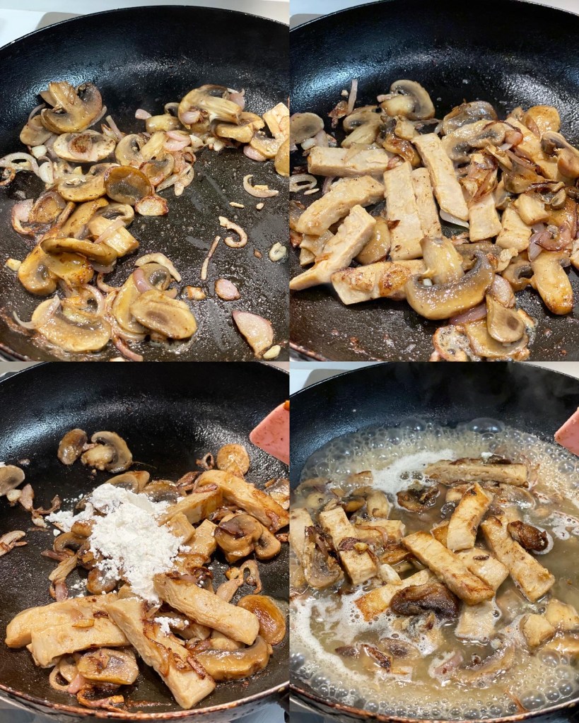 1) 燒滾熱水加1湯匙鹽,意大利粉按包裝指示減2分鐘來煮至Al Dente質感,撈起留小小意粉水備用