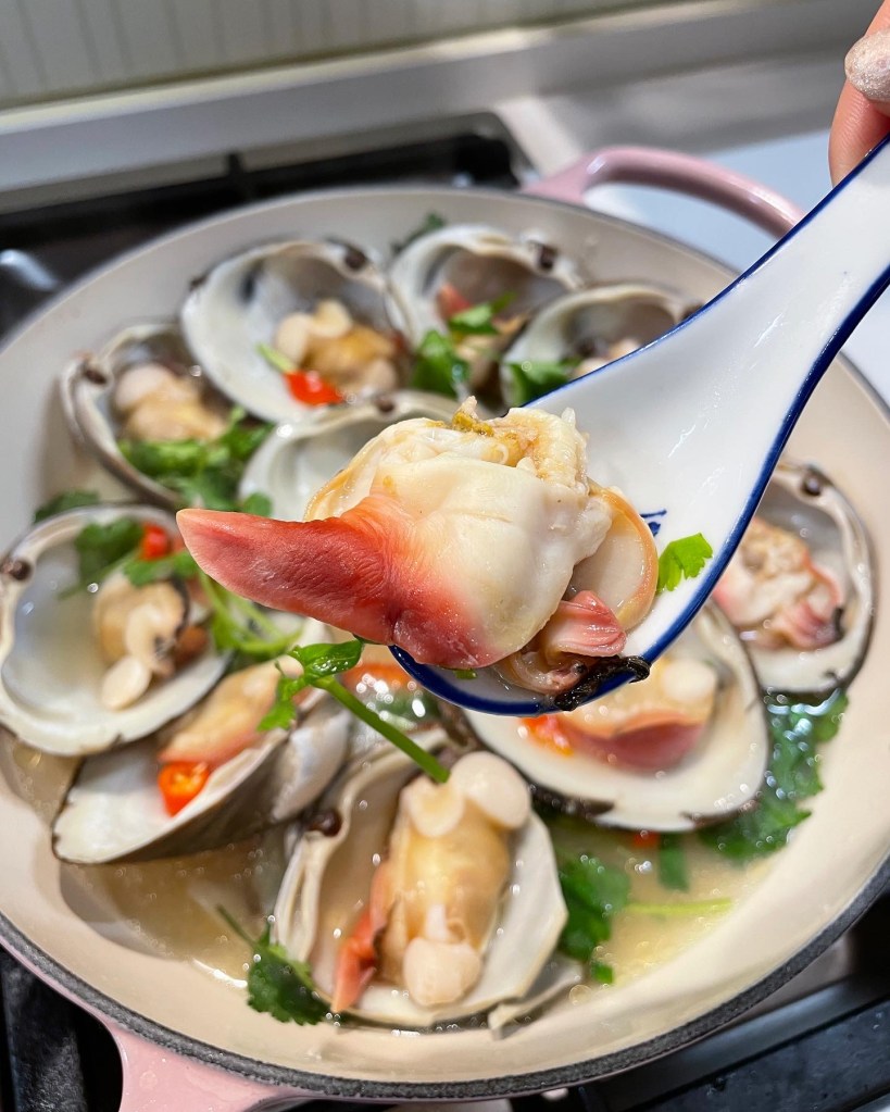 inspired by the dish I had in 彤福軒✌🏻上次煮用了貴妃蚌,今次去街市搵唔到!魚檔老闆推介了呢隻新鮮北寄貝,佢話肉厚仲好食過貴妃蚌啦呀妹 (thanks for not calling me 呀姐😂) OK真係好食喎💖👦🏻大讚🤪新鮮嘅海鮮簡單煮最易食到個鮮味!個湯底超正!有花雕酒香又吸收左海鮮味!食完可以再攞嚟煮返個面🙂唔一定要用北寄貝可以用花甲/蜆!煮一定要大火煮!時間要準確!咁就唔會過熟✨