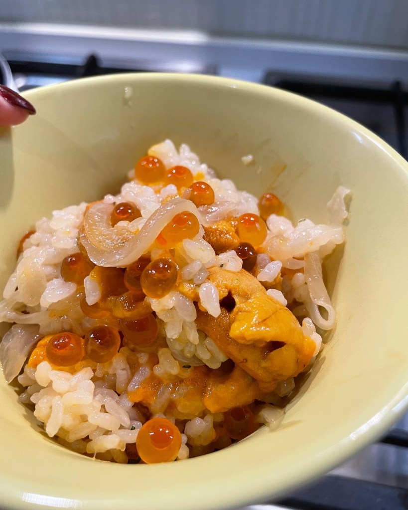🧧虎年第一個食譜POST!🐯繼續冇得晚市堂食!初一係屋企食好啲!Inspired by 幾日前食過的Kappo Rin (last pic)💖佢煮飯材料用咗紅蘿蔔同魷魚絲!我自己調配一下,諗一諗(Hi creativity)改咗用北海道洋蔥絲!超級清甜,炒過嘅洋蔥絲再加入木魚高湯煲飯,個飯勁好食同清甜🥺!我呢到用咗1/3底海膽,其他留返就咁食🤭firstly一定要有新鮮海膽同三文魚子✨海膽from @uni_brother 日本直送到屋企!包裝得好好💯fresh af😸💖👌🏻