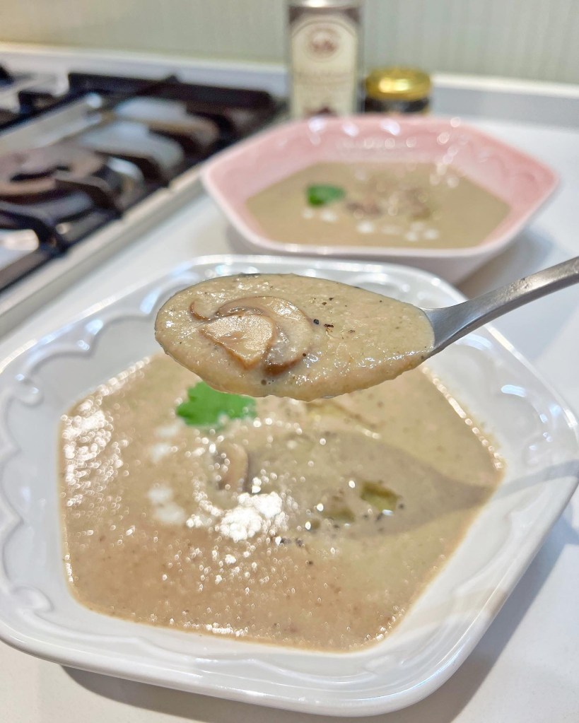 Super creamy🥺食譜之前打過不過係全素cream version!每次晚餐都覺得要飲返個湯先至圓滿😜西餐有時都唔例外😗呢隻黑松露醬係我用咗咁耐都覺得最好用嘅一隻💕菇粉和日本菇是我額外加上的,可以省卻😗