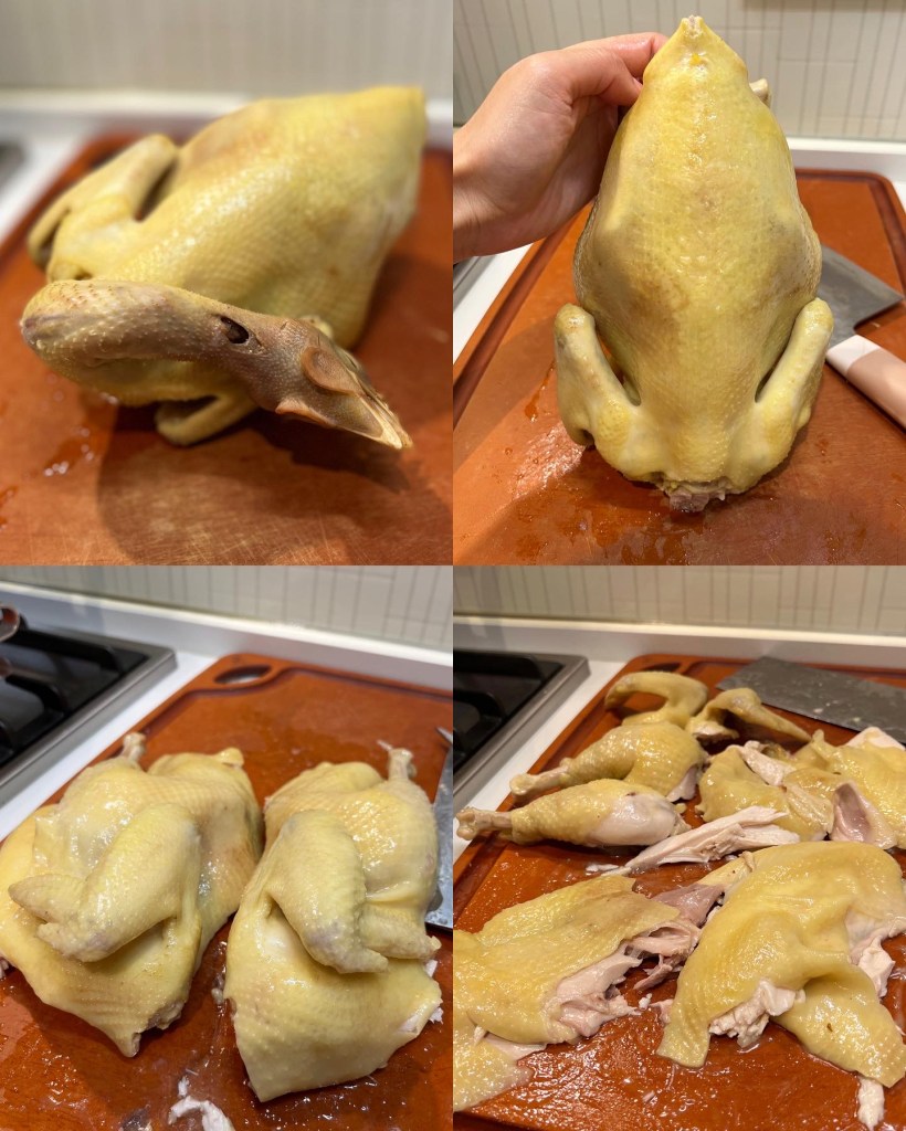 上次食咗個好好食嘅海南雞飯外賣,引發起我自己整😆其實上次整已經係三年前!日日都有太多餸想煮,成日諗唔起呢個😎今次整得超級滑!主要秘訣都係個樣,要用浸焗方法去煮熟隻雞!煮亦都一定要用細火!煮好之後要浸凍水,雞皮就會好脆身,等到隻雞降溫同表面乾身先開始切!自己整雖然有點煩,但係整到一隻滑雞充滿滿足感😜♥️🥰