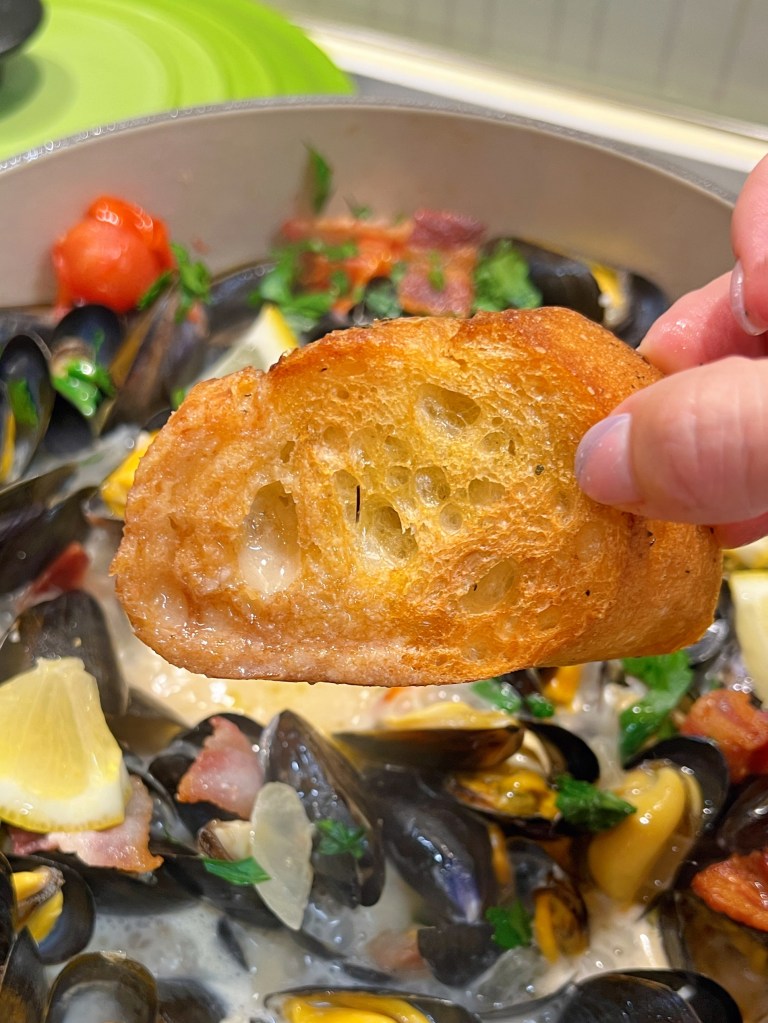 ▶️建議購買法國麵包,加些少橄欖油再焗爐焗至脆皮,用來沾白汁非常好吃喔