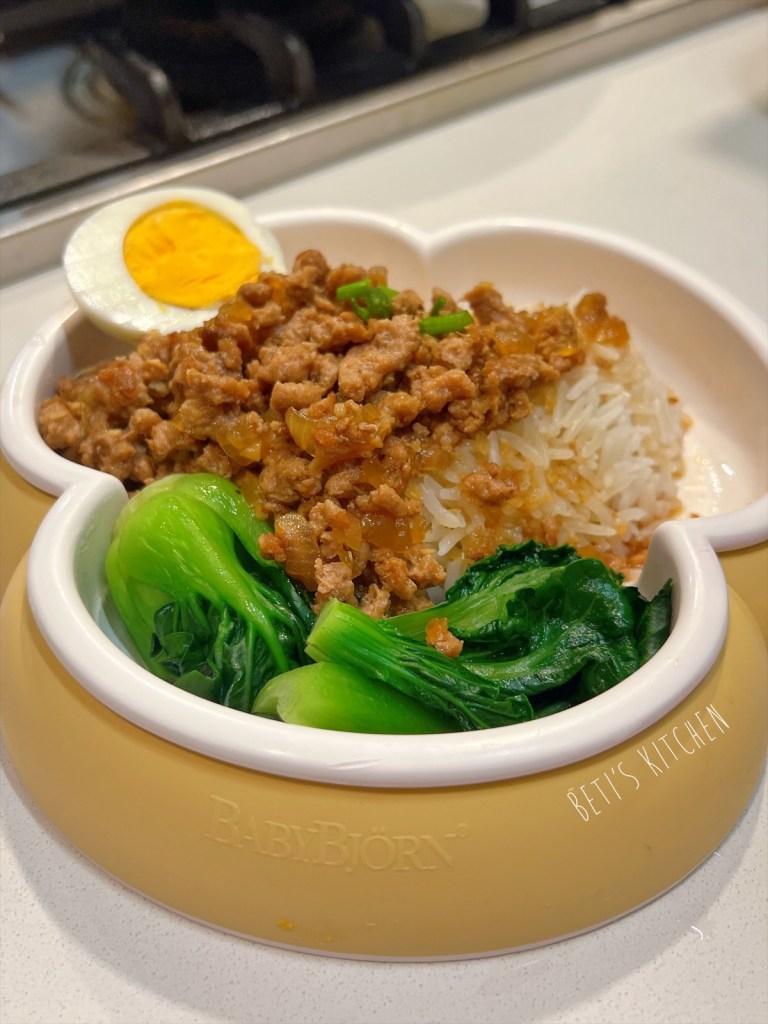 👶🏻: 兒童版本省卻了五花肉,用免治豬肉取代,直接炒香,米酒省卻,生抽用兒童減鹽豉油取代,而生抽和糖份量不用落那麼多,烹調時間亦都可以減半!兒童食譜的調味其實沒有一個標準,全部都可隨自己的小朋友年齡而加減😊