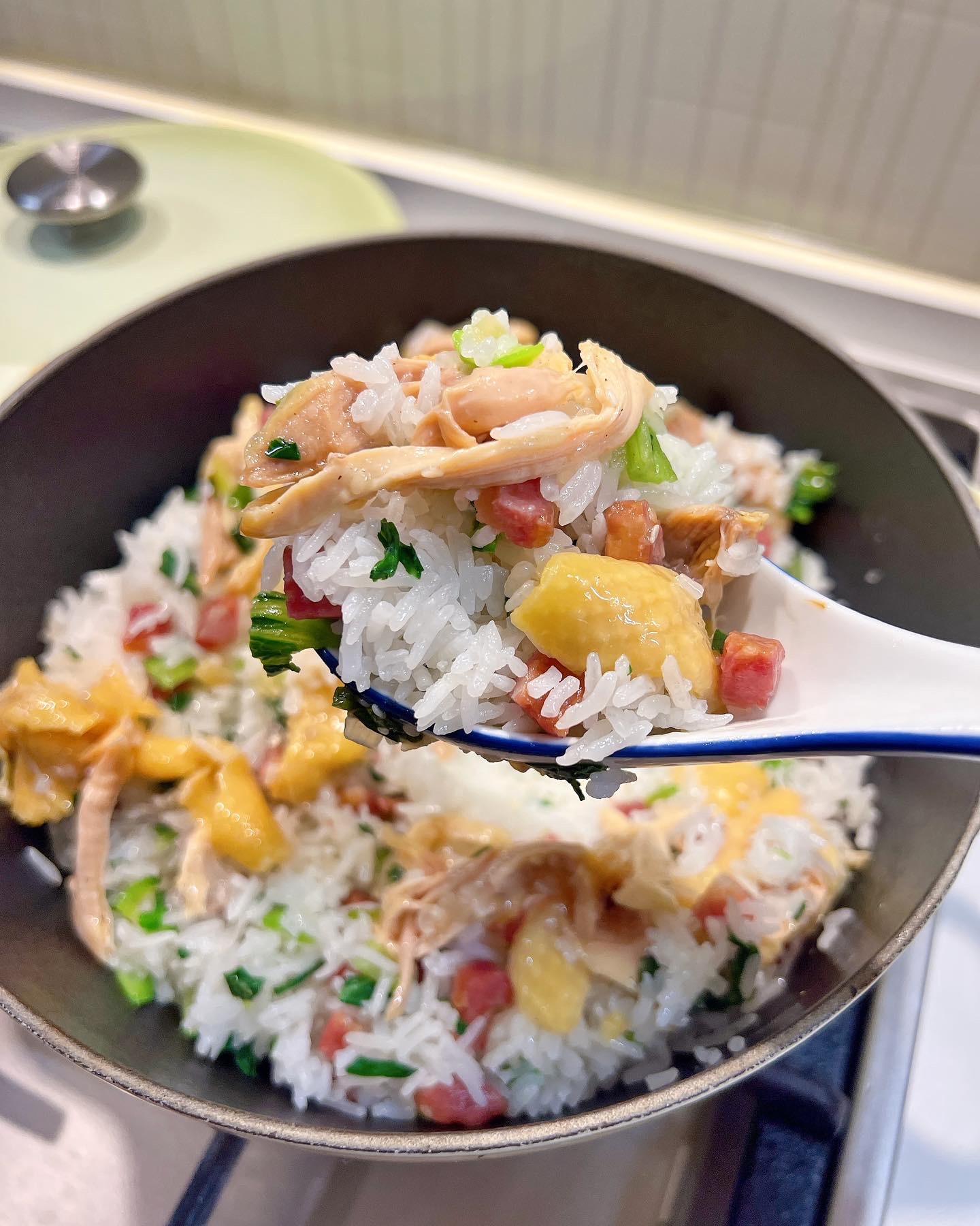 Very easy recipe but yet super yummy! Using rice cooker as to simplify the whole recipe😜超級好食簡單的一個飯!今次我都偷懶,直接用電飯煲煮飯,加埋臘腸入去煮非常之香!😍蔥油雞我用蒸的方法,蒸完就可以手撕,煲飯的時候可以開始蒸雞,蒸雞的時候可以做蔥油,一點也不浪費時間!