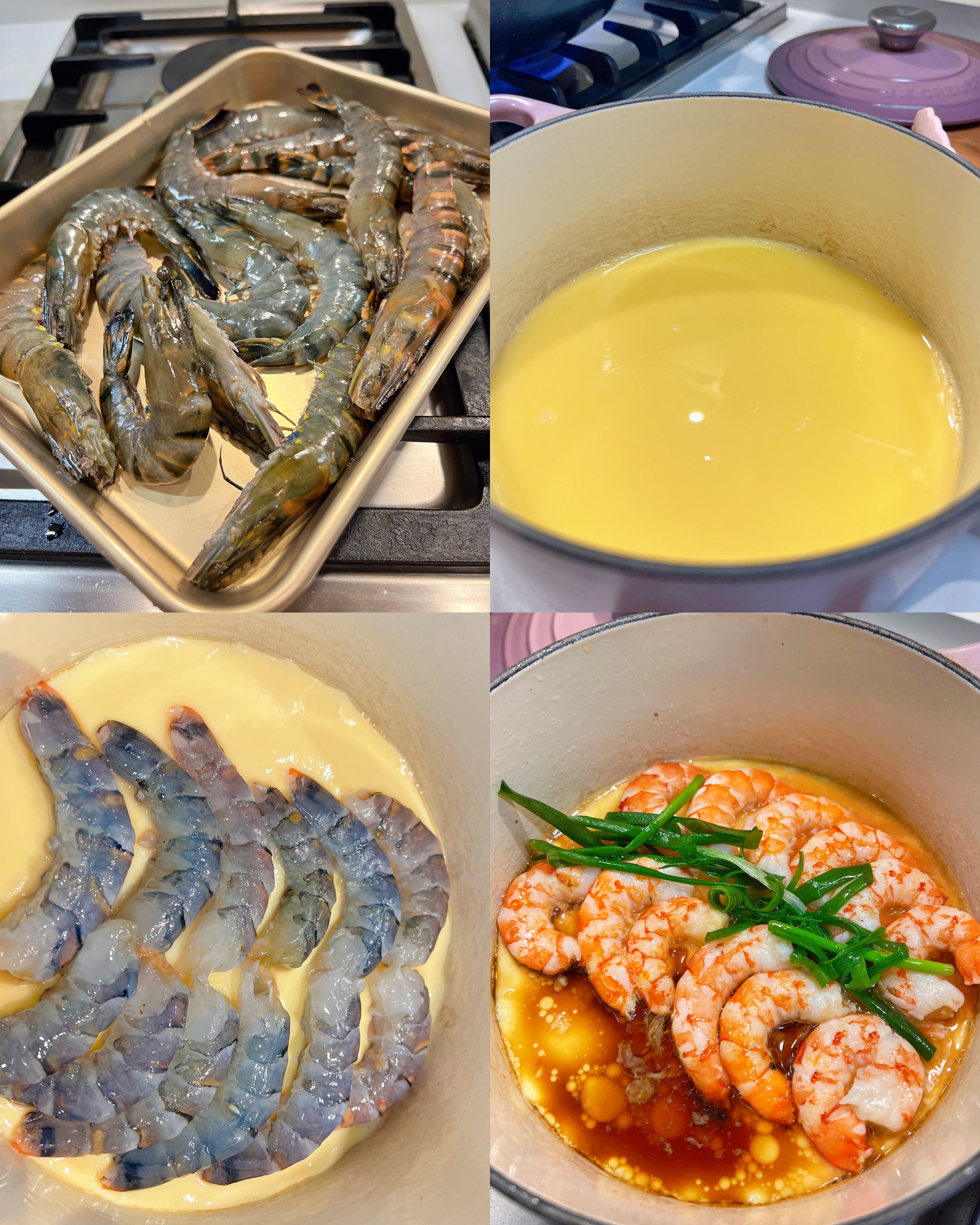 I love steamed eggs sooo much🧡超級鍾意食任何蛋類菜式🤣有時怕就咁一個蒸蛋會唔夠飽,加埋海蝦向上面就一定夠!本身冇諗過用LC…但係原來啲蒸碟搬走哂去新屋😭用LC其實都係當佢碟咁用!但係倒入蛋漿前一定要煲一煲水預熱,然後再把水倒走🥰🫶🏻蝦建議買新鮮,因為始終都係蒸,調味比較少,煮出來比急凍蝦仁好食好多😝