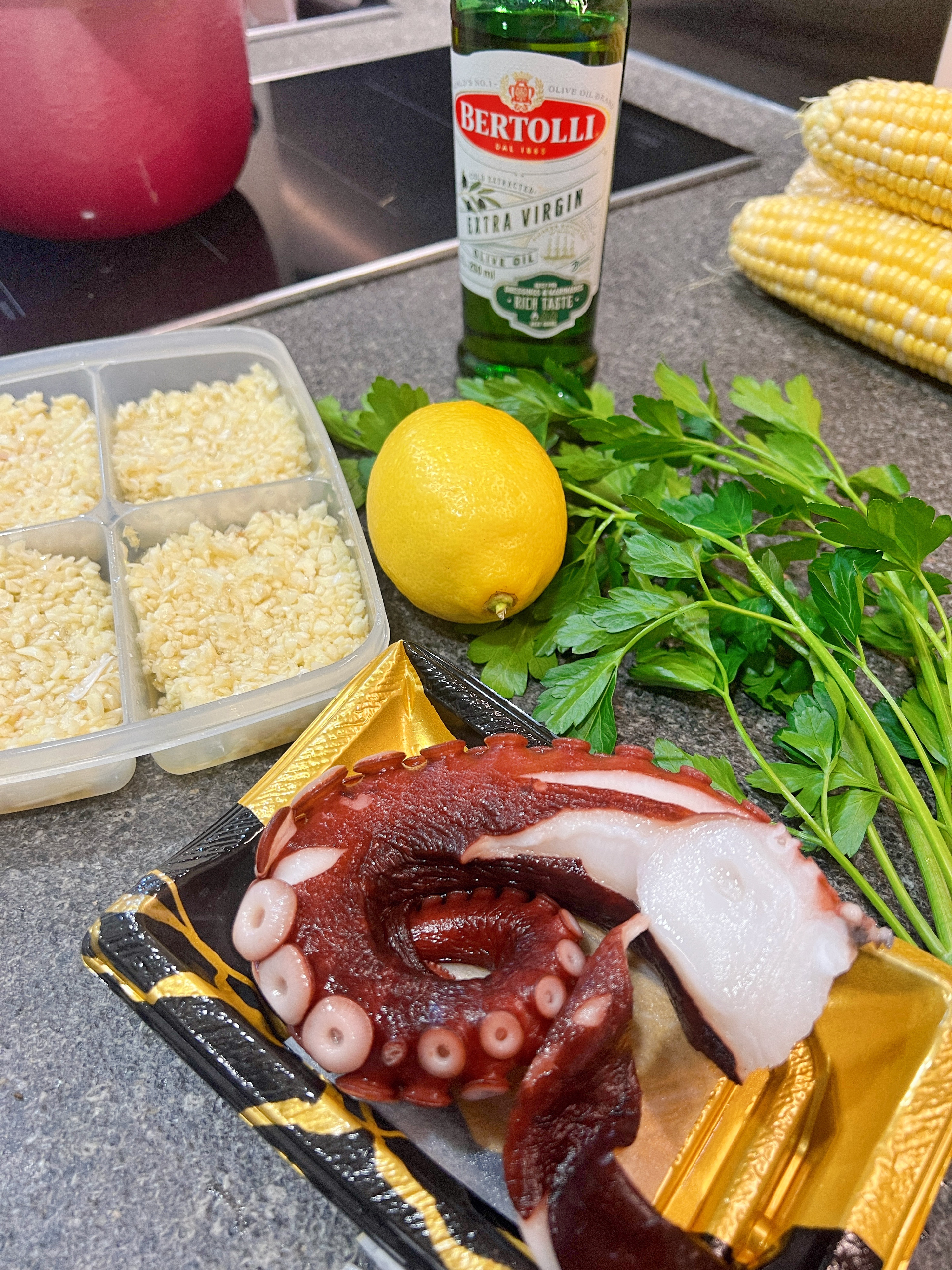 ▶️初榨橄欖油的份量可以自由調節,建議下鹽後先試味,再倒在八爪魚上!