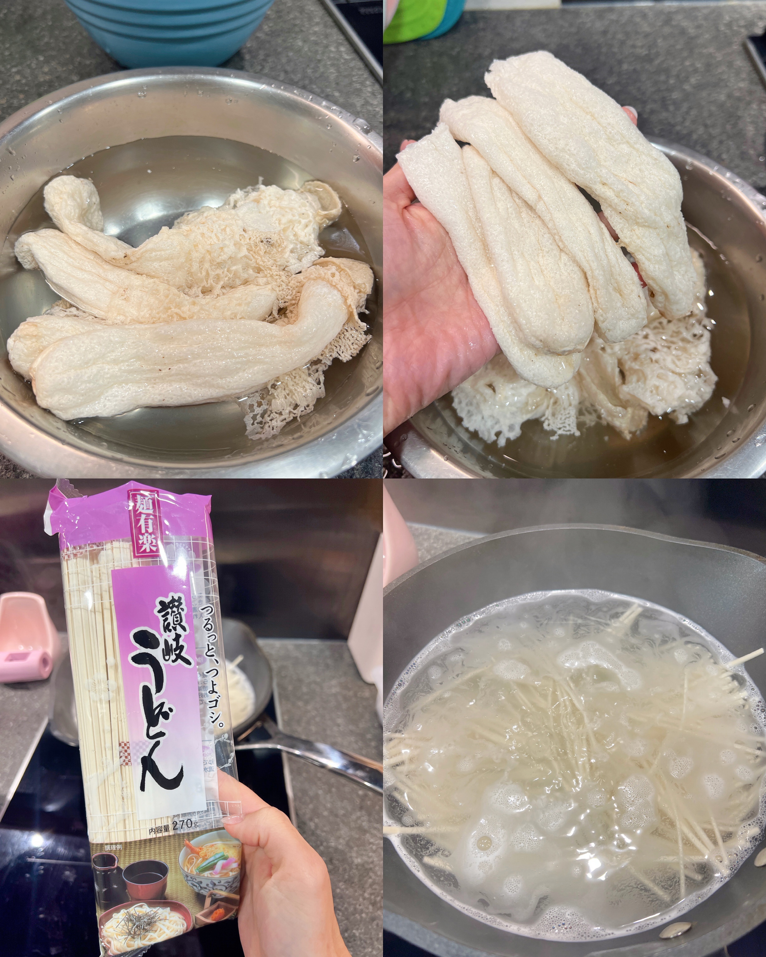 ▶️乾身的烏冬建議分開用水煮熟,然後才加入湯裏面!因為乾烏冬表面的粉比較多,一起煮可能會影響湯的質地!如果係急凍烏冬就可以直接加入湯入面一齊煮💓