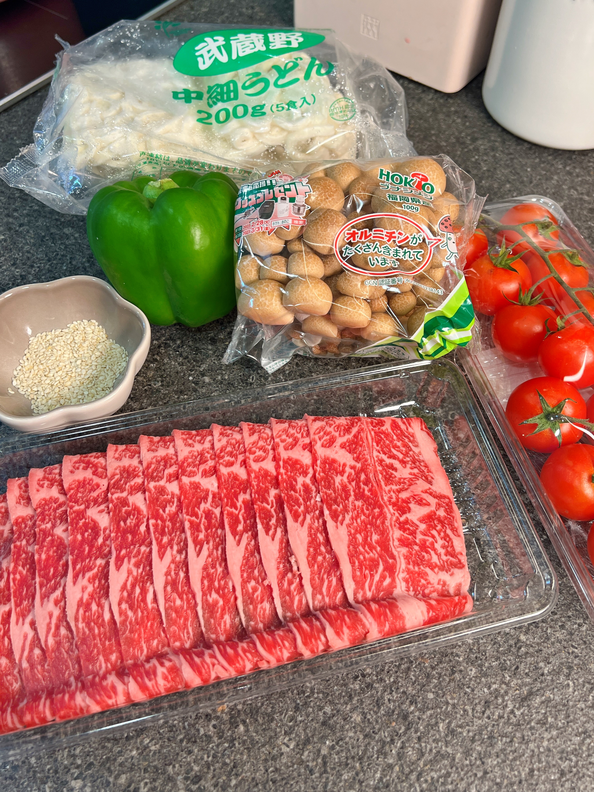 3) 急凍烏冬放入滾水煮熟 ,青椒去核切條,本菇切根部,車厘茄次半