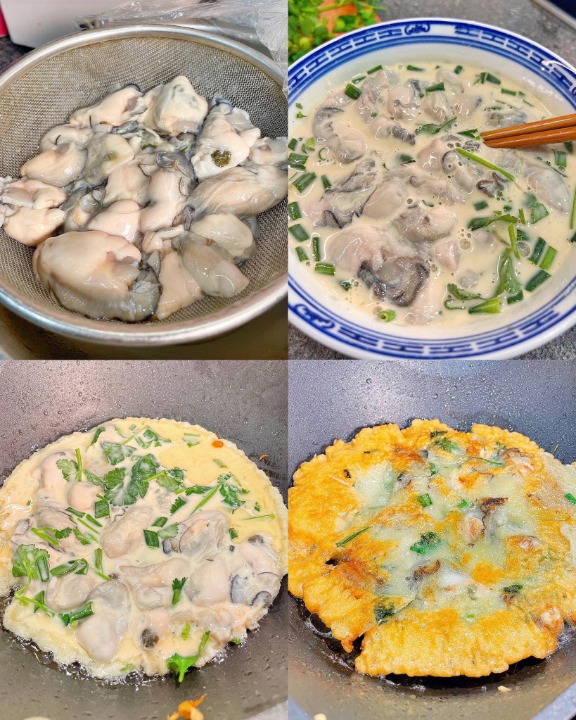 Super crispy and tasty! 成本超級低!其實蠔餅非常易做,只需要把所有材料攪拌均勻,再去煎就得😋小時候我的潮州人婆婆常常做這個給我食,外面脆身內面煙靭的口感💞今次響街市買咗一碟$20蠔仔🥰每粒都非常飽滿一咬即爆,口感十分好!用鴨蛋會比用雞蛋更加香,不過如果冇都可以用雞蛋喔😆