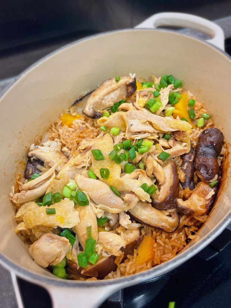 Another easy rice recipe! 又係好味同簡單的有蔬果類有肉一煲飯食譜!飯吸收晒雞肉的精華超級好吃😗放工都可以好快煮到🙈超快清哂!小朋友都會非常之鍾意💓唔一定要用明火煲,可以放哂材料入電飯煲,之後見飯煲煲滾了,中途再加上雞髀都OK,仲唔會怕火候控制問題😽不過我屋企冇咁大個電飯煲😹話說屋企個電飯煲,仲係10年前剛剛搬出嚟同👦🏻住的第一個電飯煲🥰好有紀念價值一直都唔捨得換😗
