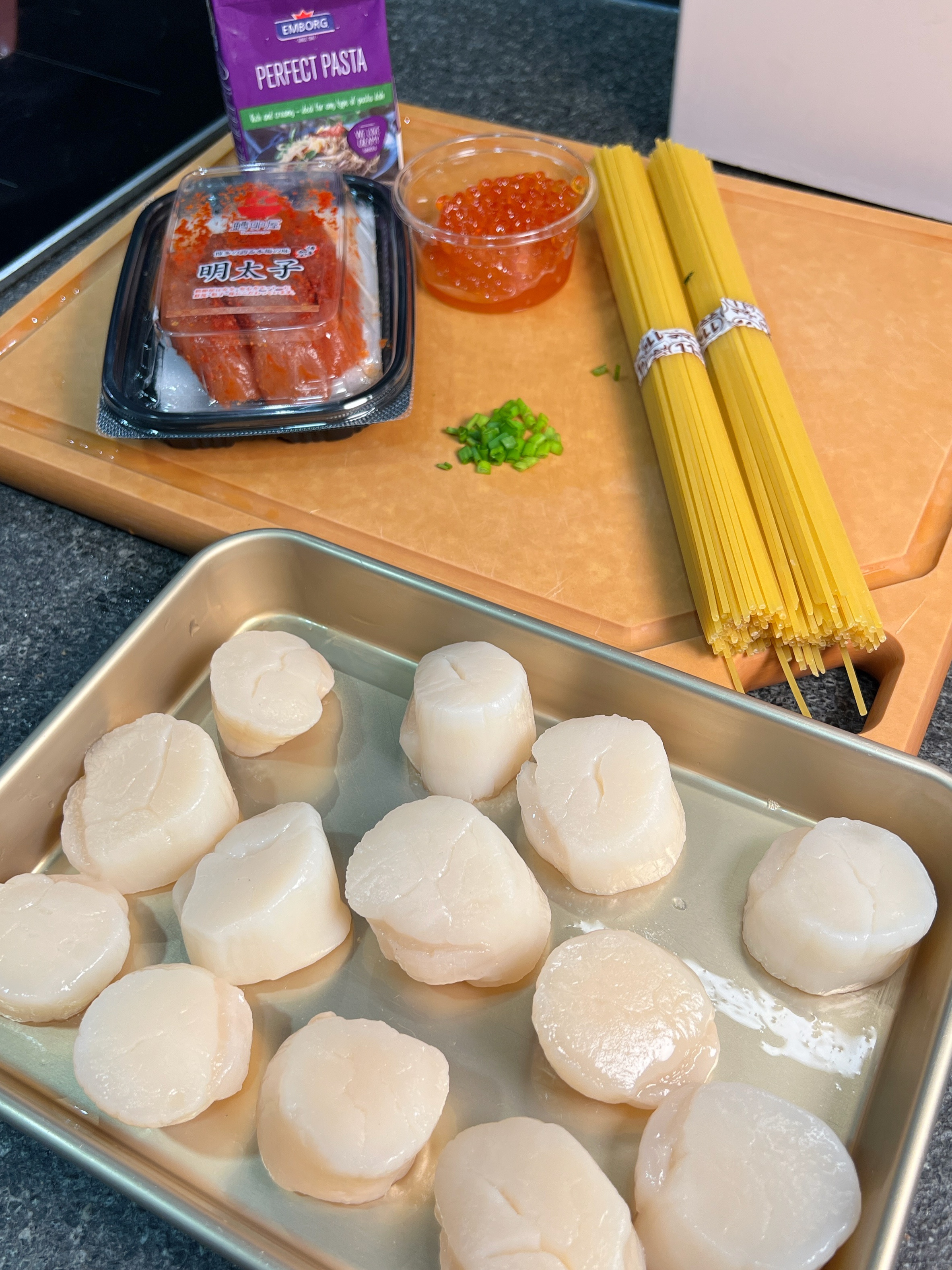 Effortless and delicious! 明太子意粉真係好好食🥰仲要勁簡單♥️材料方面好多人都問我!呢度全部都係向AEON買 (including三文魚子)😜成日煮中餐有時就會想食意粉💞🫶🏻其實煎黃金帶子非常之簡單,跟住以下tips就得😚