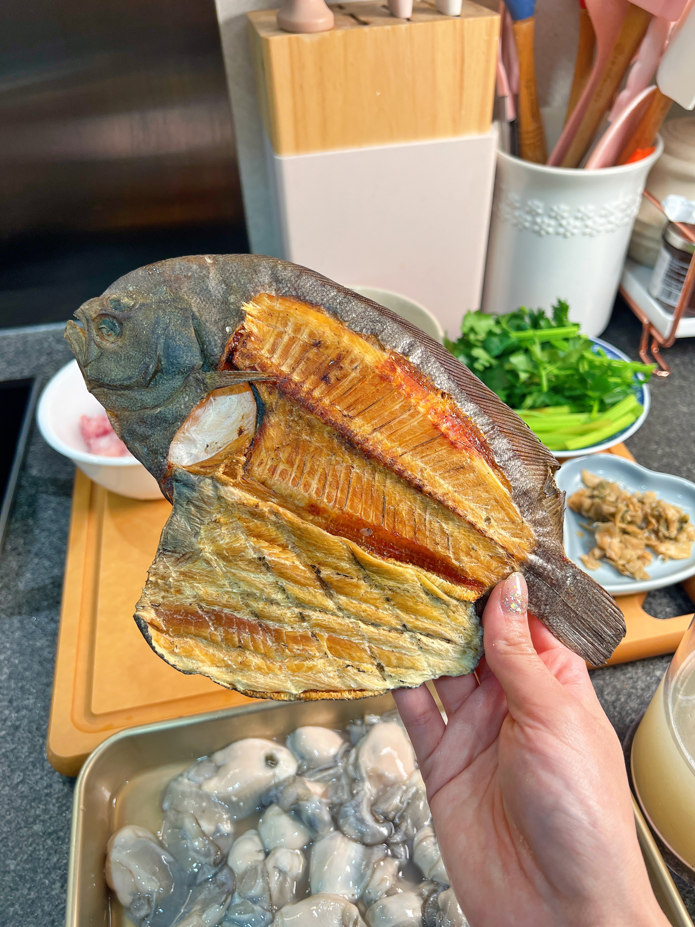 ▶️方魚/大地魚乾可在街市乾貨店買到,魚肉撕下,再用油煎香,最後加在粥上,super tasty☺️