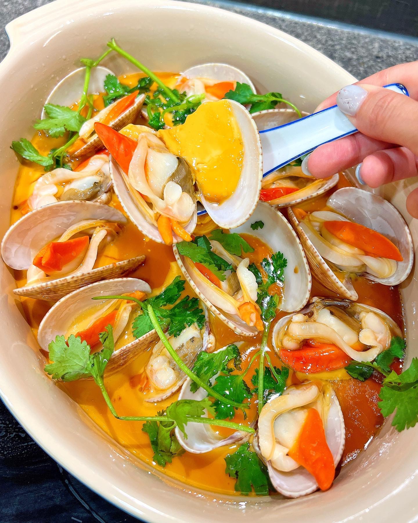 耐唔耐就想整呢個💖!呢排都好懶 重溫一下啦🤣always my fav comfort food at home♥️今次用咗超靚大隻紅肉花甲!非常鮮甜😊再加夢王蛋!顏色靚到爆炸🦦鐘意可以用煮過蜆的水代替雞湯,但係又要等佢凍返冇咁多時間😂就咁用雞湯都超好食👌🏻蛋同水比例 1:2!!! 再加錫紙去蒸!最後一定要淋滾油同豉油就好滑滑的💛