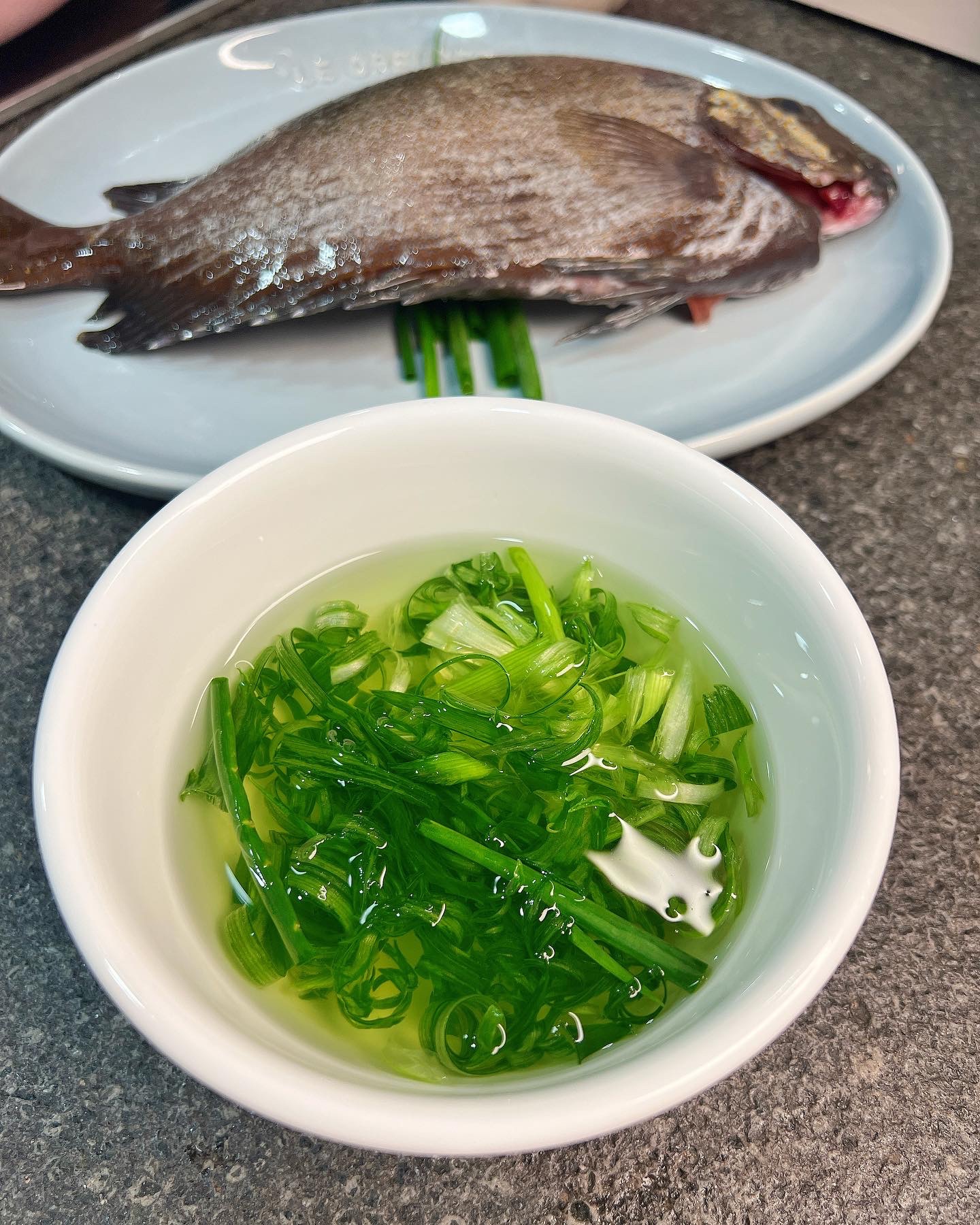 加咗堆靚靚蔥花,真係會覺得成條魚好食咗😂成件事靚咗好多😆如圖!把蒽切條!然後再打直切!之後放入水裏面浸一陣!就會開得好靚💞以前都買過啲切蔥神器,發現都係自己切最好😅