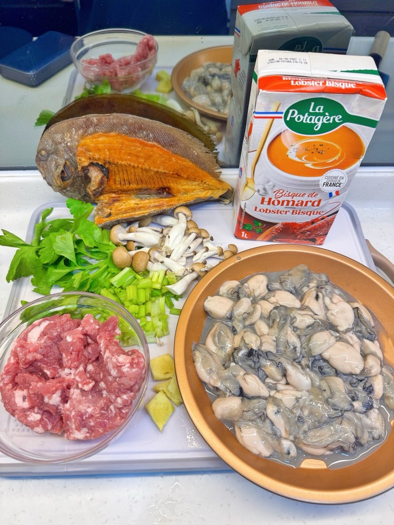 今次響超級市場買咗另一包龍蝦湯,都好好飲😬一於整個中式泡飯😍~Super easy comfort food只需要用電飯煲煲飯,煮好再加入湯內便可以,非常簡單方便快捷!要有潮州泡飯味道,就一定要有方魚,用魚骨煲一煲就成為湯底🥺蠔仔一粒粒好飽滿超好食✨