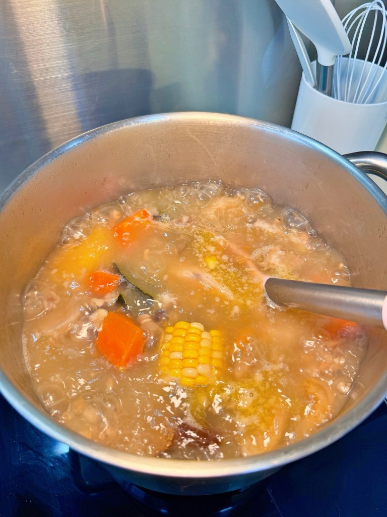 - Once the water is boiling, add all the ingredients, then bring to a boil again. Lower the heat and simmer for about 2 hours until done!