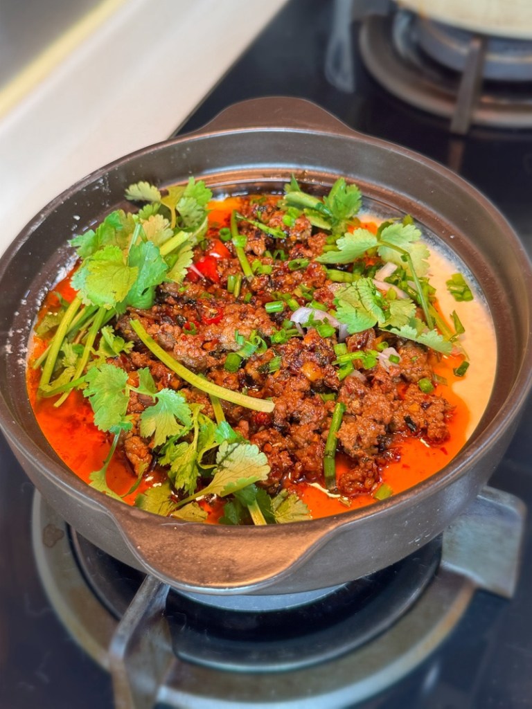 純粹見到呢排有間東京餐廳條reel係即場撞豆花再加麻辣肉碎😍好似幾吸引~俾到靈感我喺屋企自己整🤣今次用咗和牛碎~大家可以用豬肉碎或者雞肉碎代替都得!如果要自己整豆花麻煩,直接用一盒盒嘅現成滑豆腐都得😆😆😆不過就冇得一煲過咁樣💓