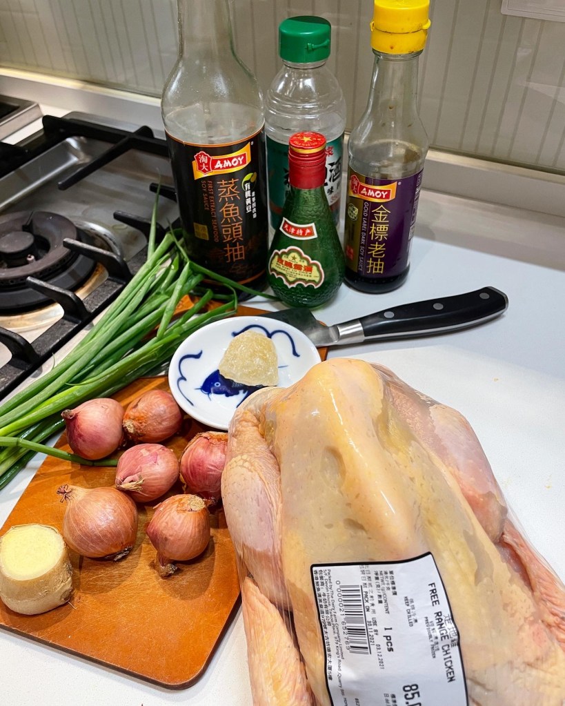 2) 蒽切段,西芹切大粒,辣椒仔切粒,蒜頭拍扁