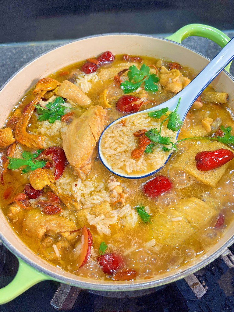 Highly recommended yummy easy recipe❤️突然間好想食湯飯,諗起之前食過一個雞湯飯好好食!就整呢個簡單version🤭雞湯加入了不同雜菌乾先煮一煮個湯底,再加入白飯吸收晒所有精華!非常鮮味好食✨成家人都食得好開心