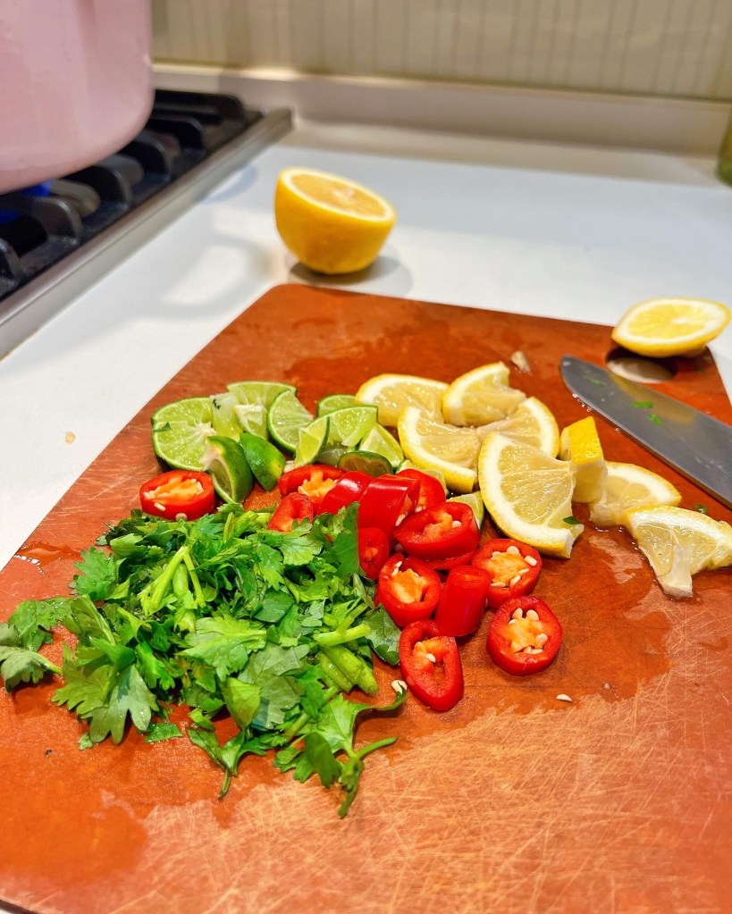 3)醬汁所有材料攪拌均勻,再加入青檸和檸檬片,可自己試味再調校至合適的味道