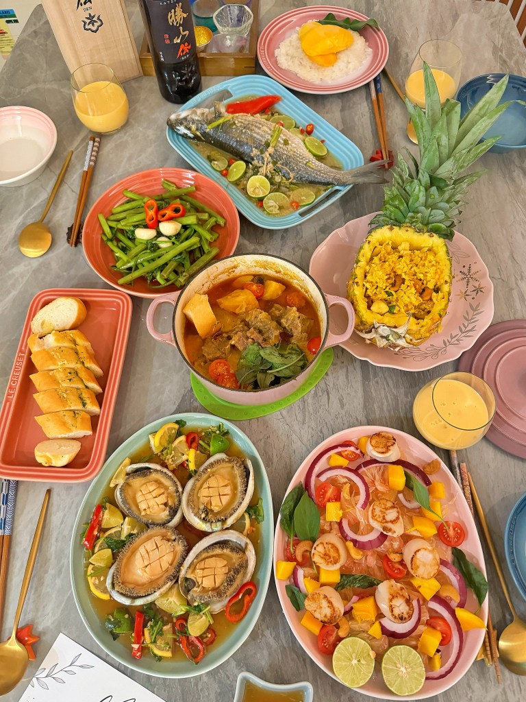 夏天就好想食泰國菜🥵加埋👶🏻其實就係5人🤣不過佢淨係食炒飯🥹好開心大家都食得咁開心😽其實我煮飯最大嘅滿足都係見到別人食得開心同覺得好食👩🏻🍳辛苦啲都值得的🥹今次有兩個都係冷盤所以非常容易控制時間!鮑魚用咗南非新鮮鮑魚,帶子用了北海道刺身帶子💕