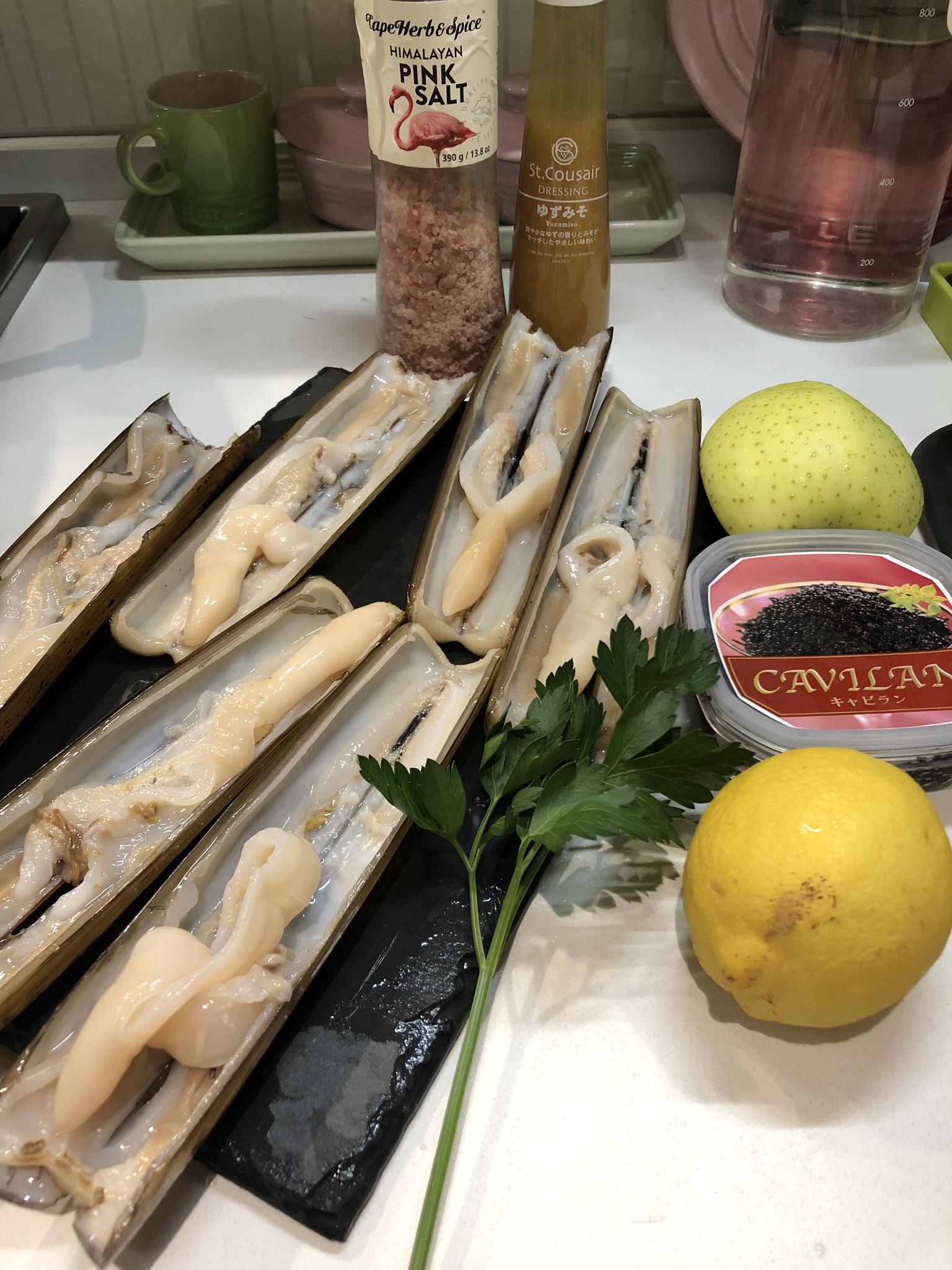 Squid ink seafood pasta 🍝 found this super great Casa Rinaldi squid ink in Aeon 👌🏻 just add it to any al dente pasta with salt and pepper, top with pan fried seafood and crispy bacon, added salmon caviar, lemon, parsley for decoration 😽