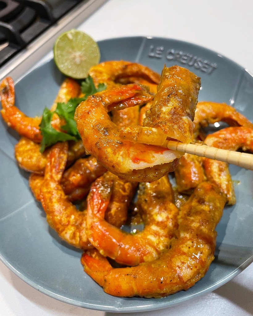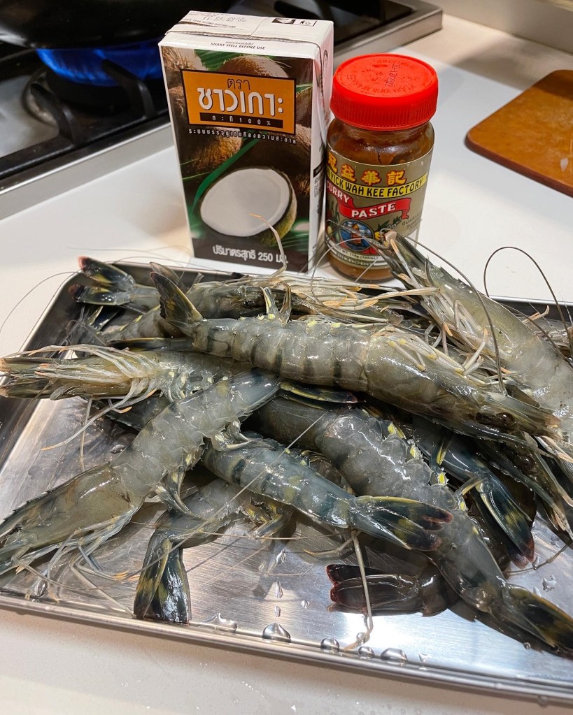 15分鐘菜式!極度簡單但好食!仲有少少咖哩汁可以撈飯💛咖哩醬我用港式冠益華記!之前整港式咖哩牛腩用淨😆我今次用咗約$70一斤的新鮮海蝦!中size!Mesh Collection from @lecreusethk 🤍