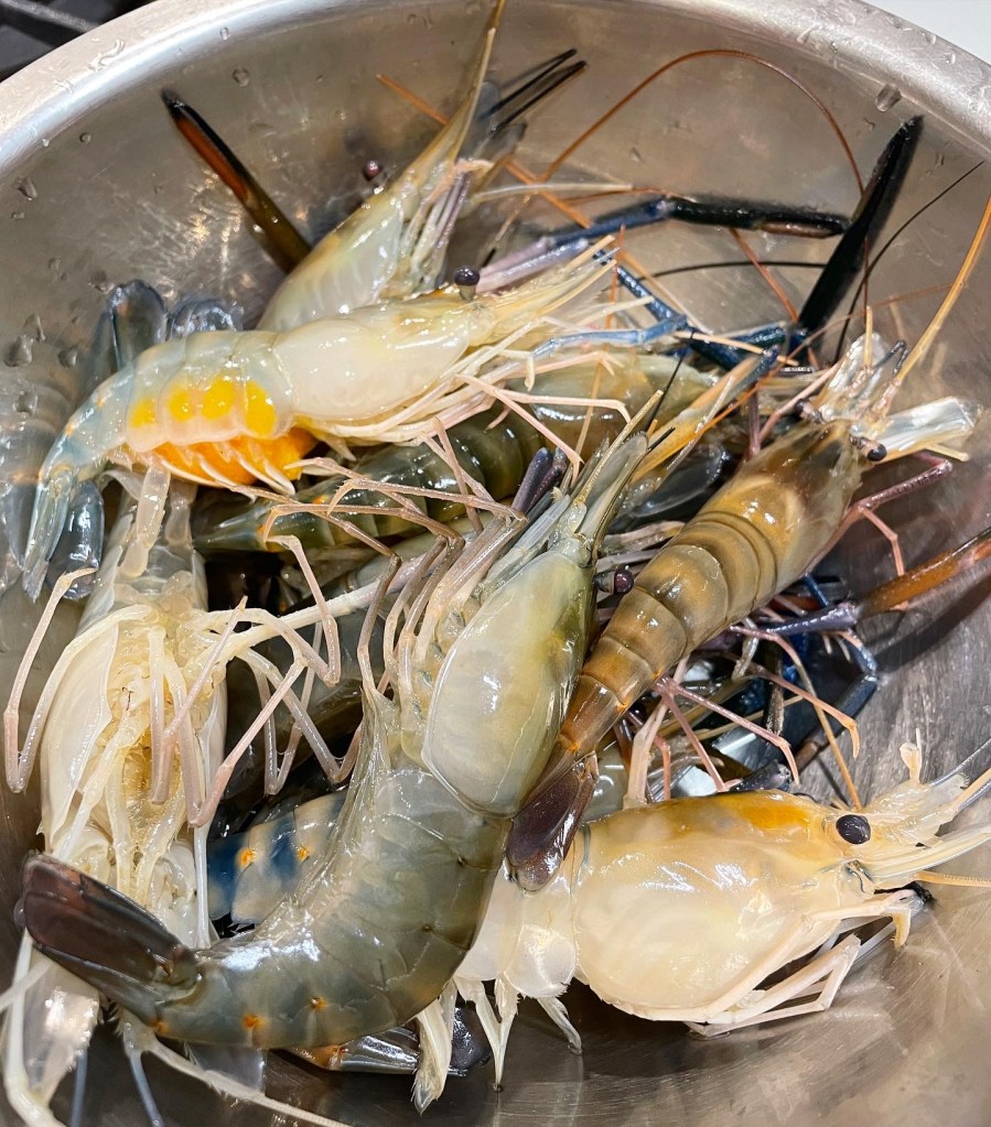 ▶️唔用蝦,用雞肉或鴨肉都OK!今次買咗隻澳洲冰鮮大虎蝦!肉質爽甜彈牙!我煎咗個蝦頭做裝飾♥️