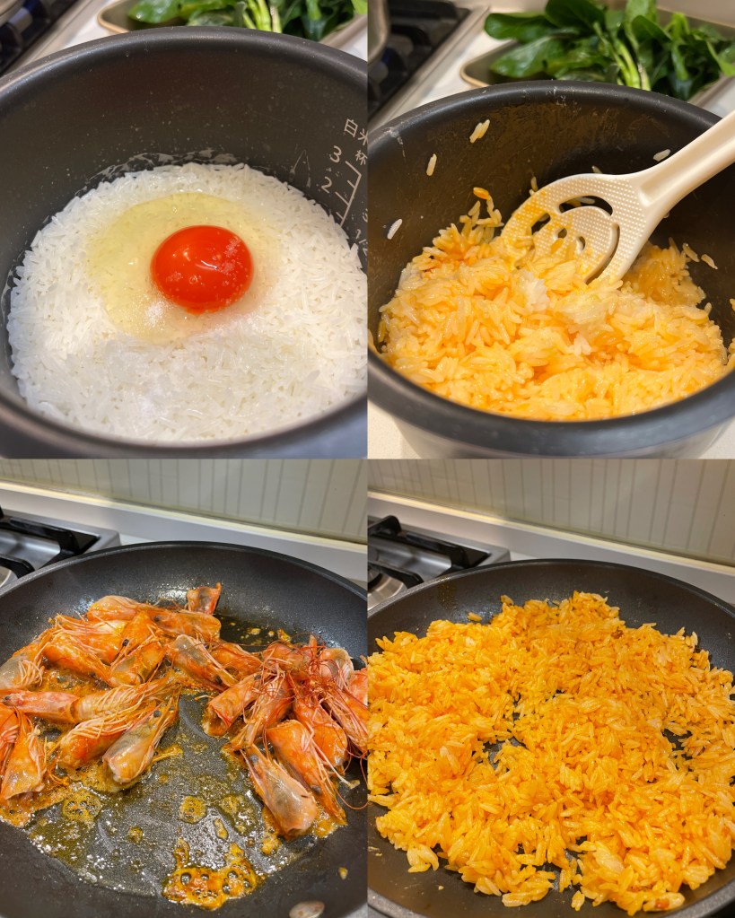 My boys’ fav fried rice👦🏻👶🏻! 純分享下我個人經驗,家庭式小技術😌今次用咗新鮮游水海蝦!加少少櫻花蝦同埋菜心🤲🏻我煮炒飯比較喜歡先把蛋和飯攪拌均勻!今次又係用咗蘭王蛋,隻色美美的🫶🏻今次見啲海蝦蝦頭好多膏,炒飯之前特登爆香左啲蝦膏先開始炒❤️🔥