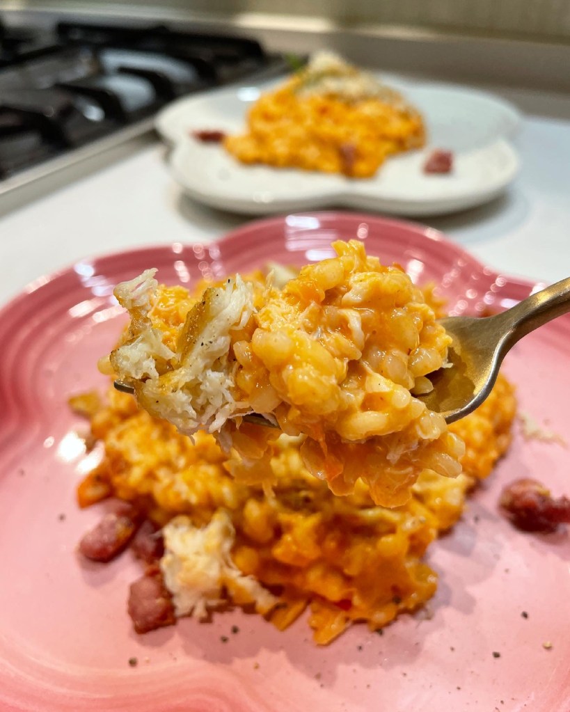 煮意大利飯不困難,但就要有耐性不時攪拌同時間要攞得準,最好唔好煮多過20分鐘!就會煮到al dente!今次用左拆好哂既蟹肉!方便到爆🙈賣相都好leng leng😍⭐️呢個意大利飯係參考一間意大利餐廳,👦🏻食過之後不斷叫我整煩死我🤣成全佢❤️