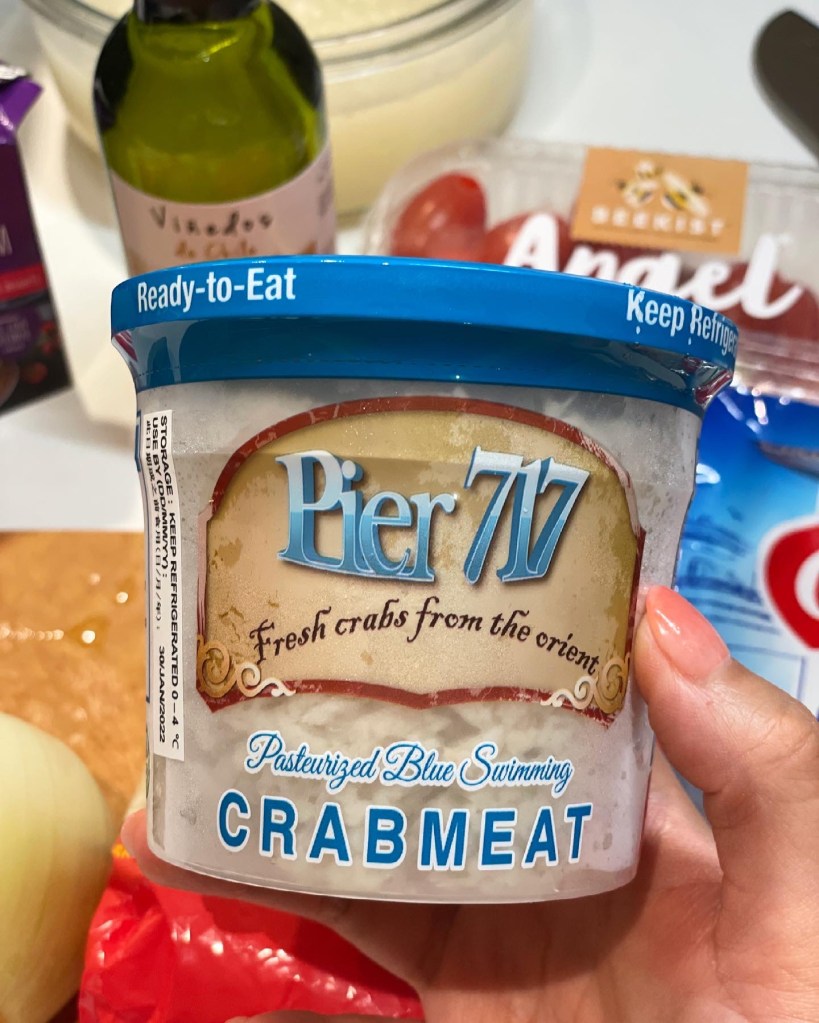 4)下忌廉、cheese和調味料攪拌均勻煮多1分鐘,熄火即成!可放少少炒香左嘅蟹肉做裝飾💕