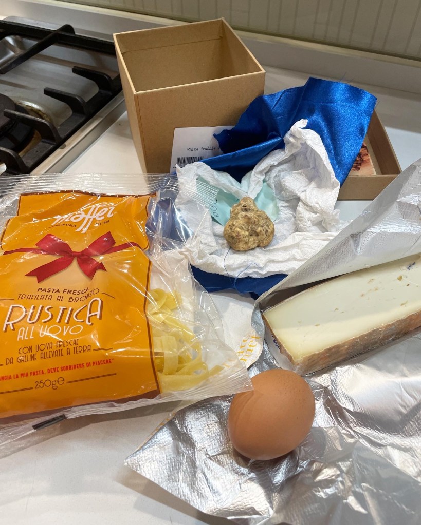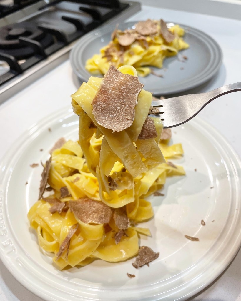 White truffle season🇮🇹! 向 @mercatogourmet_hk 買咗新鮮白松露!上年整黑松露!今年試吓白松露!真係香好多❤️❤️❤️ 呢間係我最鍾意嘅意大利材料店😍平過某超市😜不過缺點就係唔係好就腳!再用咗新鮮闊條麵同taleggio cheese!但簡單啲用cream cheese都得🤍 意粉好簡單整就得!唔使整色整水😂因為主要係想食白松露原味👌🏻
