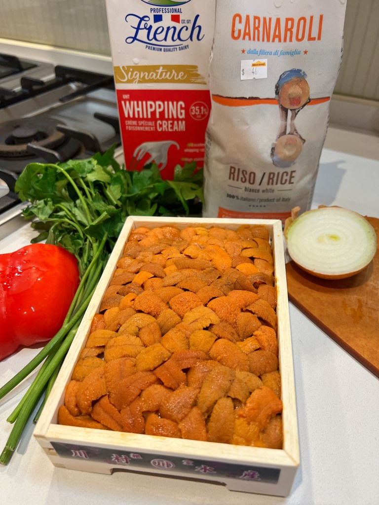 隨心之作💛👦🏻放工帶了一盒海膽和櫻花蝦回家🥰睇吓雪櫃有咩先,有盒忌廉、parsley同上星期用剩嘅芝士🤣再加買咗包靚靚日本米!整個日式x意式fusion菜!30分鐘搞掂🥸鐘意creamy d 可以落多啲cream🥛呢度落咗 1/3盒海膽左右,好香😌