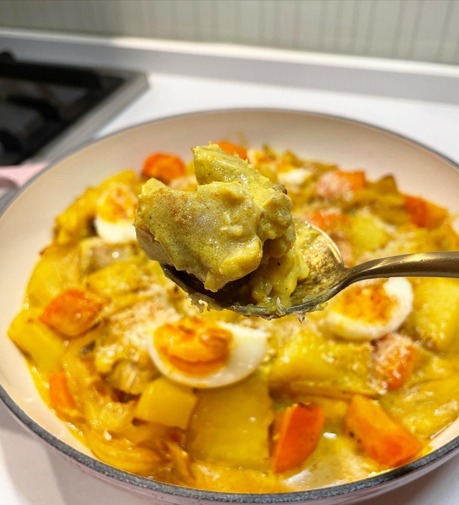 ▶️咖喱粉是不可以就咁大火炒的!否則可能會苦!先落水和椰漿再落咖喱粉!