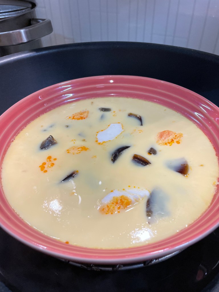 5) 熄火後加入椰絲和雞蛋,放入已預熱200度焗爐焗10分鐘至金黃色